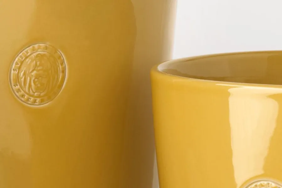 Krukan tillverkas för hand och varje exemplar är unikt i sitt slag. Hur tydligt Svenskt Tenns emblem syns kan därför variera.