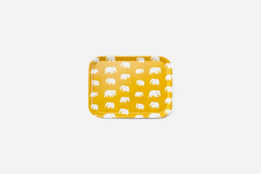 Svenskt Tenns klassiska brickor i björkfaner finns i flera färgstarka mönster av Josef Frank och Estrid Ericson, bland annat mönstret Elefant. Svenskt Tenns grundare Estrid Ericson reste mycket till olika platser runt om i världen. Hon letade alltid efter vackra föremål, textilier och souvenirer att ta hem och sälja i butiken på Strandvägen. Det var efter en förlaga från Belgiska Kongo som hon formgav mönstret med de små elefanterna. Svenskt Tenn tryckte textil Elefant för första gången i slutet av 1930-talet.