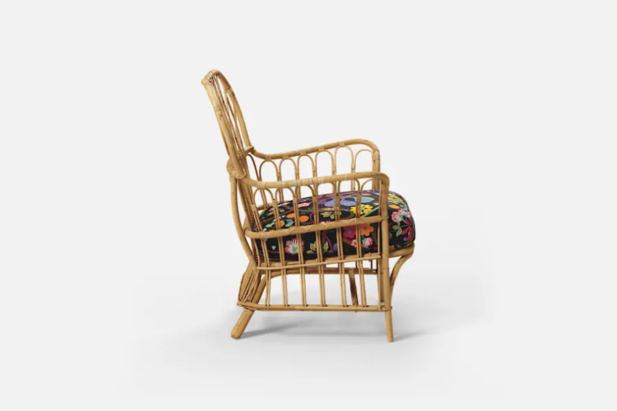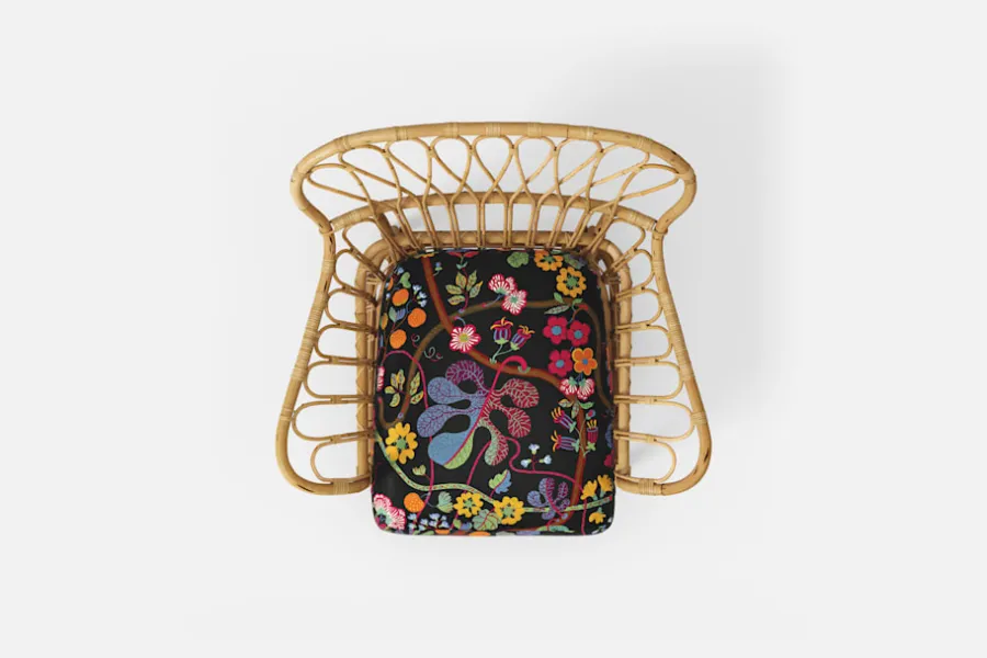 Dyna som passar till Fåtölj 311 klädd i textil Baranquilla svart. Baranquilla fick sitt namn efter den colombianska hamnstaden vid det Karibiska havet, som Josef Frank och hans fru Anna passerade under exilen från Sverige till Amerika 1941, mitt under brinnande världskrig.