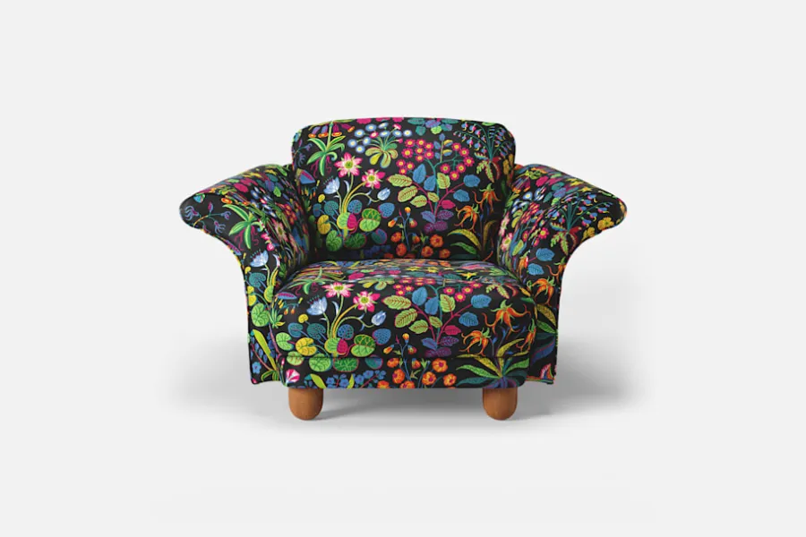 Liljevalchssoffan med tillhörande fåtölj hör till de första möblerna som Josef Frank ritade för Svenskt Tenn 1934. De är namngivna efter utställningen på Liljevalchs Konsthall i september samma år, där de uppmärksammades för sin voluminösa form och sitt generösa sittdjup. Såväl soffan som fåtöljen lanserades under en tid då strama, funktionalistiska möbler dominerade marknaden, och har genom åren kommit att stå för Josef Franks aversion mot det han kallade “den svenska ”Slöjdföreningstråkigheten”. Liljevalchssoffan stod klädd med Baker-kretongen Körsbär i Estrid Ericsons hem på Strandvägen, och fick sin renässans i samband med 100-årsminnet av Josef Franks födelse 1985. Till hundraårsjubileet 2024 återlanseras den tillhörande fåtöljen, efter att ha legat vilande i Svenskt Tenns arkiv i nära ett decennium.