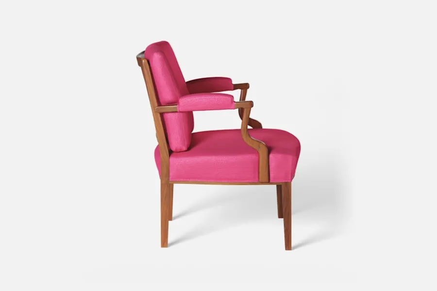 Med inspiration från 1700-talets nätta karmstolar formgav Josef Frank karmstol 969. För att skapa spänning i formgivningen valde Josef Frank ofta att blanda olika träslag och material. Karmstol 969 är gjord i mahogny med infällning av rotting i ryggen bakom den löstagbara kudden. Stolen formgavs 1939 och finns i två olika sitthöjder.