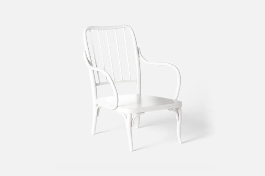 Josef Frank formgav flera böjträstolar under sent 1920-tal, varav några producerades för Thonet-Mundus AG i Wien. Böjträfåtöljen P4:s originalskiss har funnits bevarad i Svenskt Tenns arkiv och har troligtvis aldrig varit i produktion tidigare. Den har en genombruten rygg och detaljer av svarvade pinnar som gör att den inger ett lätt och luftigt intryck.