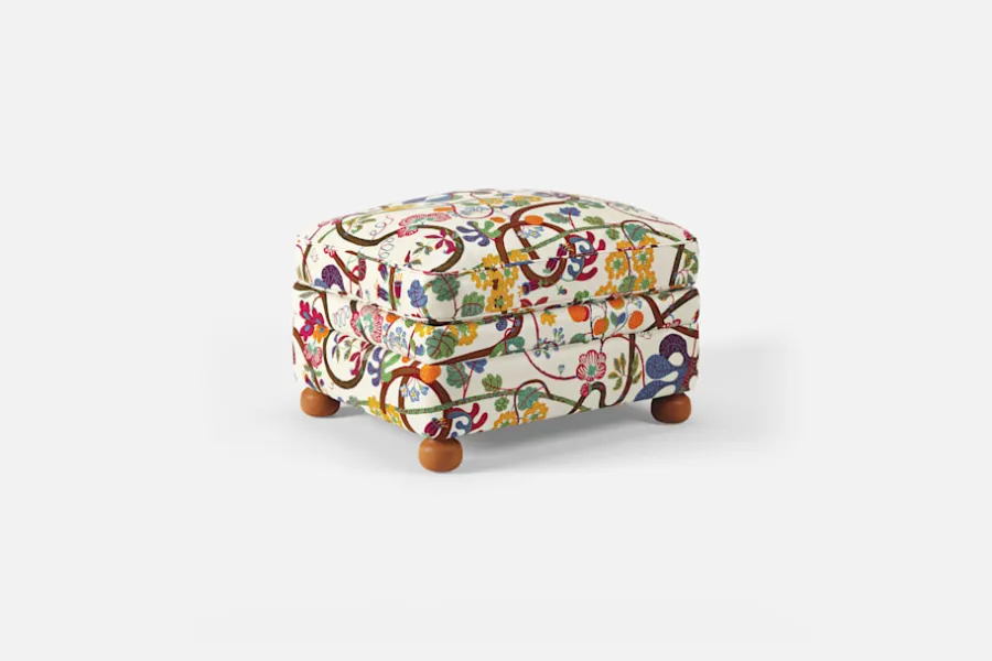 Denna fotpall formgavs av Josef Frank år 1934 och hör till fåtölj 336. Dess omsorgsfullt utförda stoppning och mjuka framtoning ger användaren en behaglig komfort.