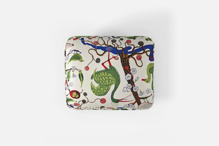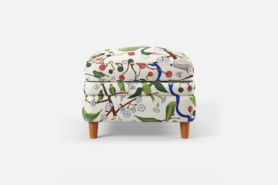Denna fotpall formgavs av Josef Frank år 1936 tillsammans med fåtölj 568. Den generösa sittplymån under dynan och de facetterade nedåt avsmalnande benen är typiska för Josef Franks formspråk.