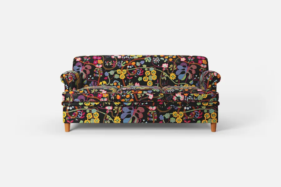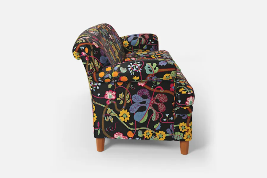 Denna lite mindre soffa är formgiven av Josef Frank i mitten av 1930-talet. Till skillnad från Josef Franks nättare skåp och stolar ger hans soffor uttryck för en bekväm tyngd och soliditet. Komforten skapas med en omsorgsfullt utförd stoppning och dubbla fjädersystem.