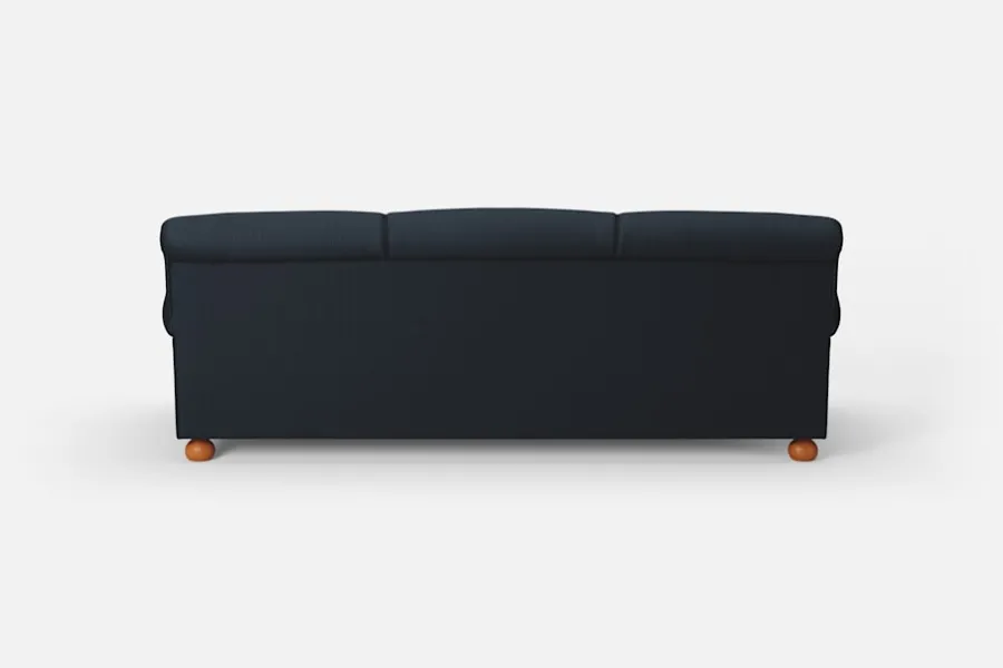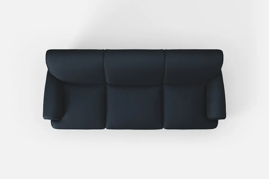 Josef Frank formgav den här långa, rymliga soffan under 1930-talets andra hälft. Ryggpartiet delas av rep vilket utgör en spännande dekor. Enligt Josef Frank skulle också det moderna hemmet vara en plats för vila och bekvämlighet, sittplymåer och dubbla fjädersystem ger en utmärkt komfort.