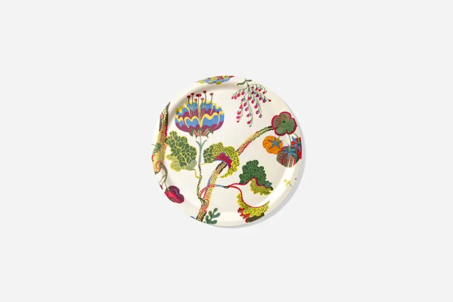Svenskt Tenns klassiska brickor i björkfaner finns i flera färgstarka mönster av Josef Frank, bland annat Vegetable Tree. Mönstret är en variant av livsträdstemat som Josef Frank ofta använde sig av och som med glimten i ögat har stöpts om till ett grönsaksträd. Här stiliserar Josef Frank formerna, höjer färgstyrkan och blandar naturtroget och fantasirikt för att väcka förundran. Mönstret formgavs under Josef Franks tid i New York, 1943-1945.