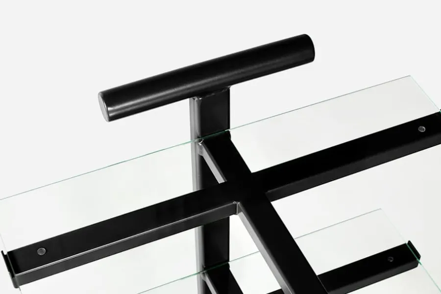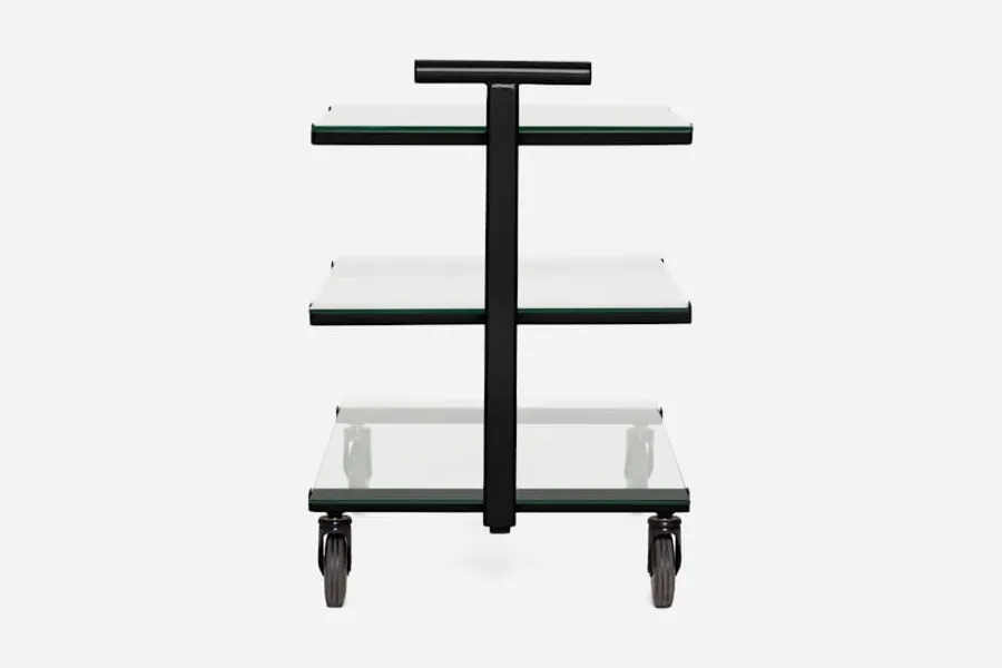Denna stilsäkra tevagn formgavs ursprungligen av Josef Frank i svart och valnöt, under 1930-talets andra hälft. Den här versionen tillkom på 1980-talet då den lackades i olika kulörer och fick sina hyllplan utbytta mot glasskivor.