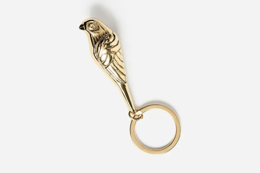 Formgivaren Maja Sten har skapat en kollektion nyckelringar i mässing för Svenskt Tenn, med motiv föreställande en fågel, en snäcka och en tekanna. Den lilla mässingsfågeln är ett uttryck för frihet, och anspelar samtidigt på en del fåglars sätt att ständigt återvända hem till sitt trygga bo.