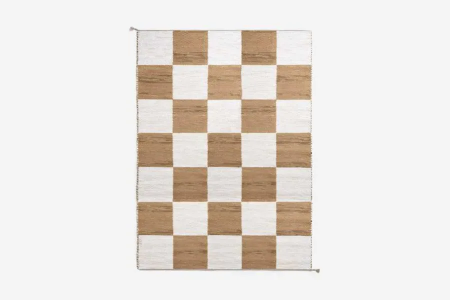 Svenskt Tenns dubbelvävda trasmatta ”Schackrutan” är formgiven av Margit Thorén under 1940-talet.