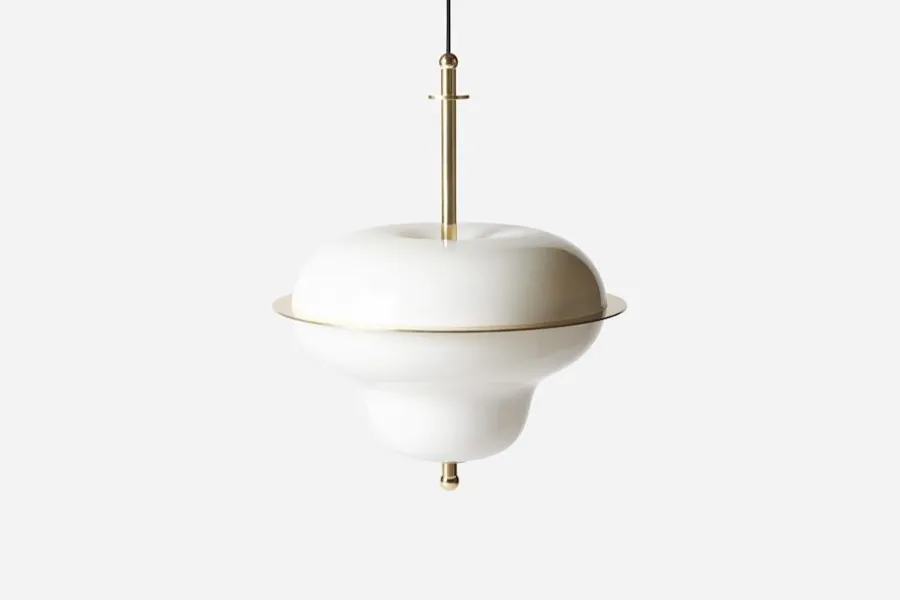 En skulptural, funktionell och elegant taklampa, formgiven exklusivt för Svenskt Tenn av konstnären och formgivaren Mimmi Blomqvist. Taklampan är både praktisk och vacker med sin mjuka, svampliknande form. Även när den är släckt fyller den en funktion, då det vackra opalglaset i kombination med den glänsande mässingen gör den till ett smycke att hänga i taket. Kollektionen tar avstamp i organiska former från naturen och det mjuka formspråk som Mimmi Blomqvist mött under sin uppväxt. Den är namngiven efter Mimmis farmor Sirkka.
