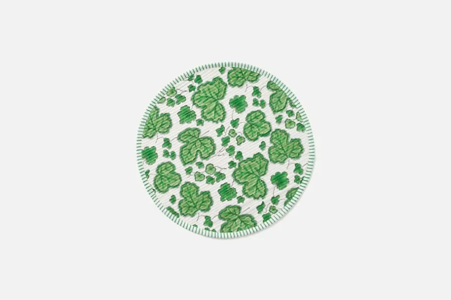 Fikonbladsmönstret är skapat av Table Love och den gröna färgställningen säljs exklusivt på Svenskt Tenn