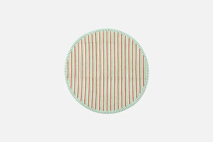 Blocktryckt, quiltad tablett med dekorativt fikonlövsmönster på ena sidan, och vackra ränder på andra. Tabletten är skapad för användas, och passar lika naturligt på ett festligt dukat bord som till en vardagsmiddag under vår och höst. Tabletten blir vacker tillsammans med en duk, tallrikar och glas. Tillsammans skapas en fin dukning som känns enkel men samtidigt inbjudande.