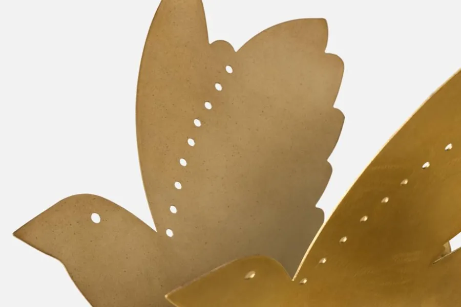 Unik bordslampa i mässing, formgiven av den grekiske konstnären Alekos Fassianos. Fågeln är ett återkommande inslag i Fassianos formgivning. För honom utgjorde den sinnebilden av frihet, rörelse, självständighet och medelhavsnaturen, och var en tidlös symbol för kärlek och fred. Bordslampan finns tillgängligt i två exemplar och kan sedan beställas under en begränsad period på Svenskt Tenn.