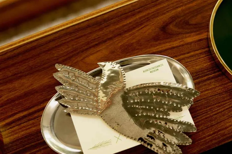 Denna upphängningsbara dekorationsfågel i silver är skapad efter ett verk av grekiske konstnären Alekos Fassianos. Fågeln är karaktäristiskt och återkommande motiv i Fassianos konstnärliga verk, som för honom symboliserade frihet.
