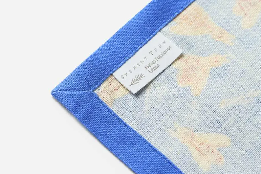 Svenskt Tenns textilprodukter maskintvättas i 40 grader. Undvik blötläggning samt tvätt i högre och kallare temperaturer då färgen riskerar att fälla ut. Använd ett milt tvättmedel utan blekmedel. Låt textilen dropptorka. Centrifugera aldrig. Vid tvätt kan textilierna krympa med cirka 3 – 5 %.