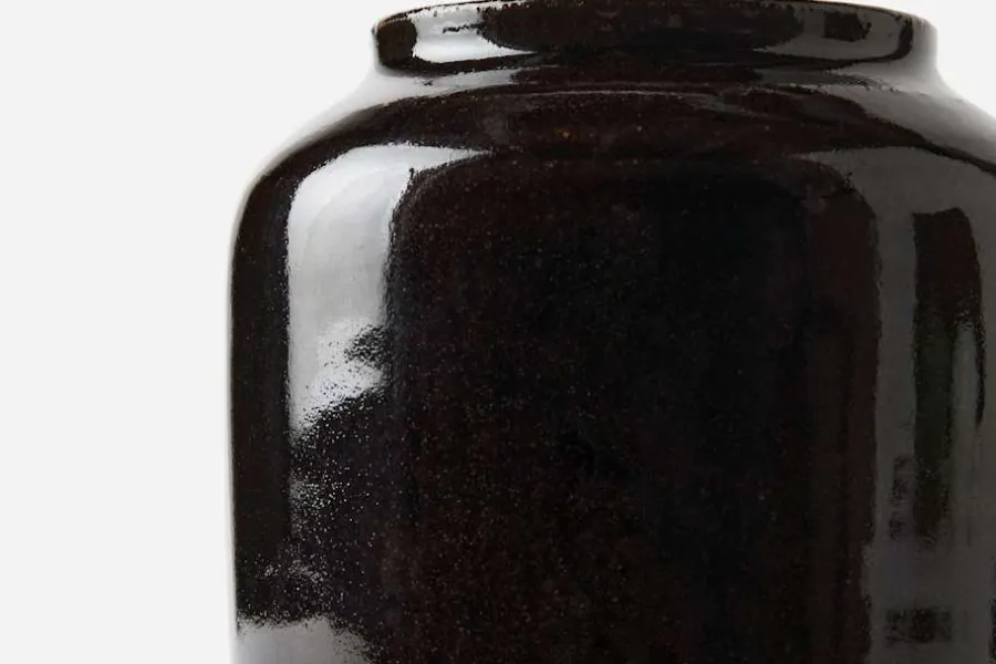 Liten, handgjord keramikvas av Annali Andersson, inspirerad av klassiska, östasiatiska förvaringskrus och vaser. Den Temmokusvarta färgen är en östasiatisk glasyr som ursprungligen användes på teskålar från Kina under Songdynastin.