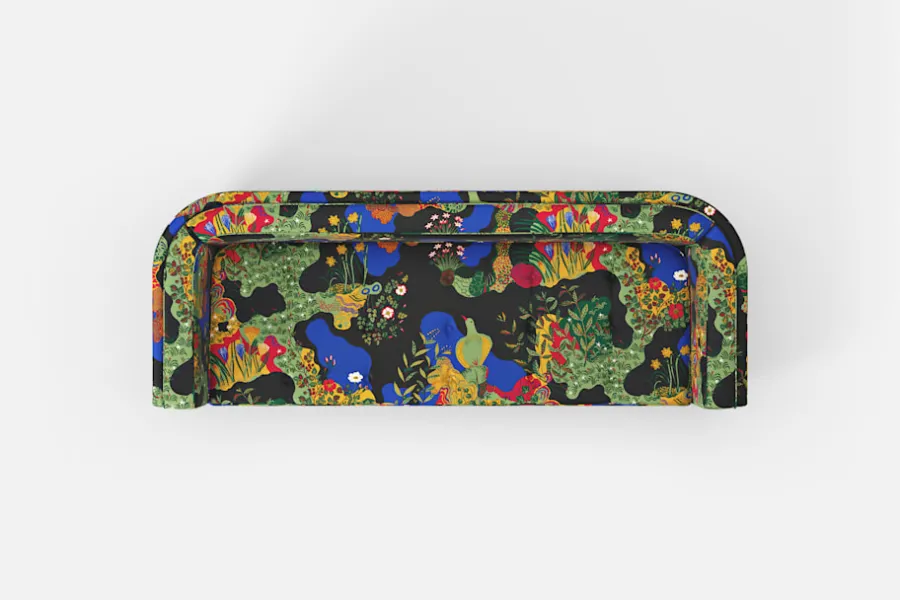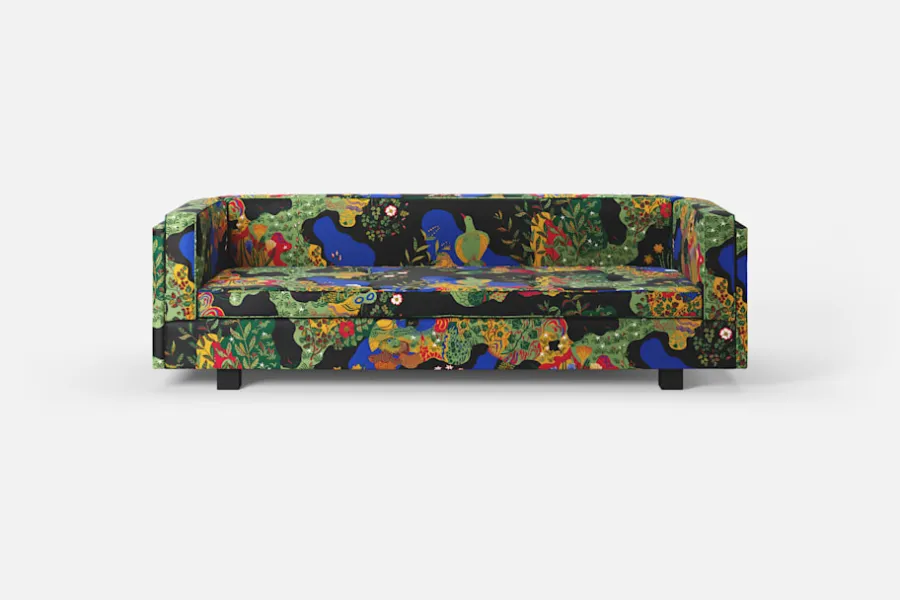 Soffa 136 formgavs av Björn Trägårdh för Svenskt Tenns tidiga möbelsortiment, och finns bland annat avbildad i företagets allra första möbelkatalog från 1931. Soffans rundade hörn och de lösa ryggplymåerna i samma form utmärker designen, som var ytterst ovanlig för soffor under tidigt 30-tal.