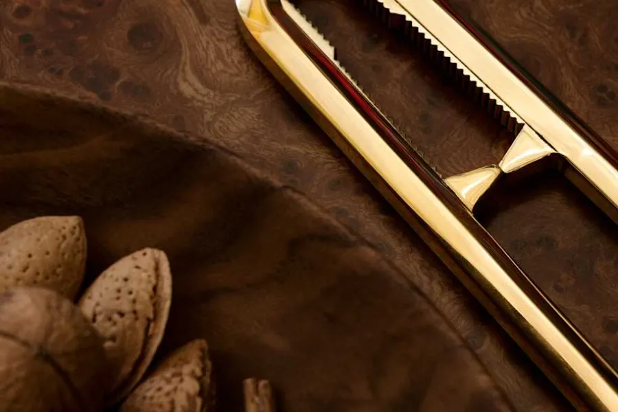 En robust knäckare för alla säsonger, skaldjur om senhösten och nötter till vintern. Formgivaren Daniel Enoksson inspirerades av svunnen smidesteknik där man först glödgade och sedan formade den mjuka metallen vid städet. Nötknäckaren är formad i hexagonal mässingsstång, där de subtila kanterna ger ett fast grepp för handen.