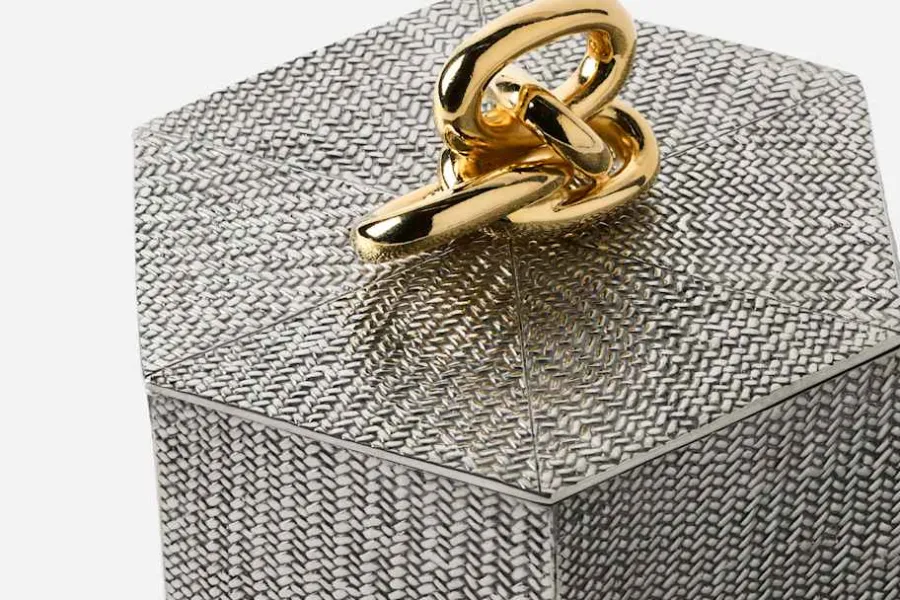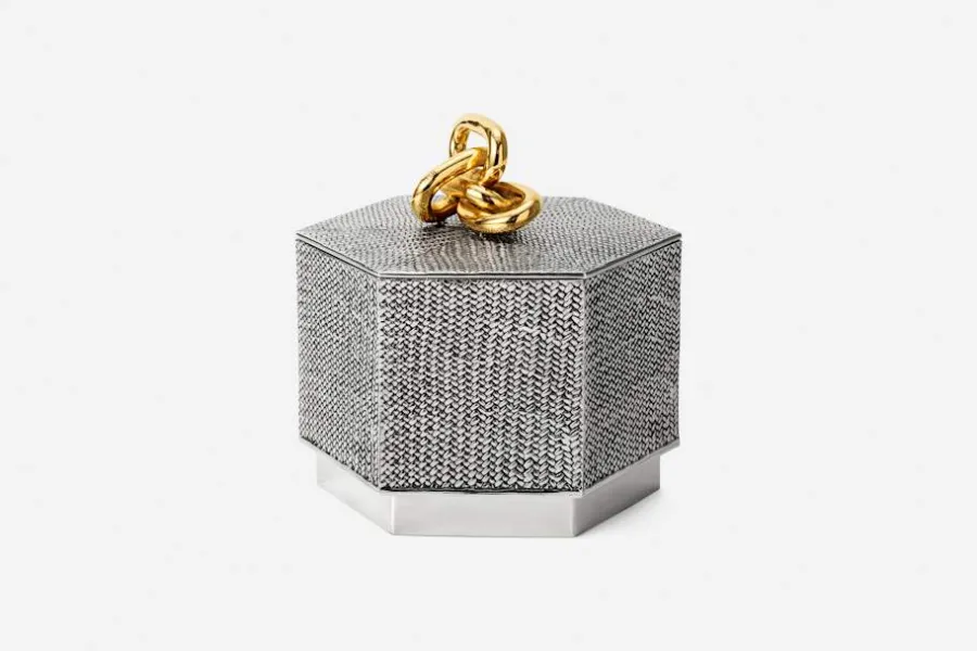 Burkens flätade dekor i relief har fått sin utformning efter ett mönster som Björn Trägårdh formgav för Svenskt Tenn på 1930-talet, mönstret kallas Panama efter sin likhet med den flätade panamahatten.