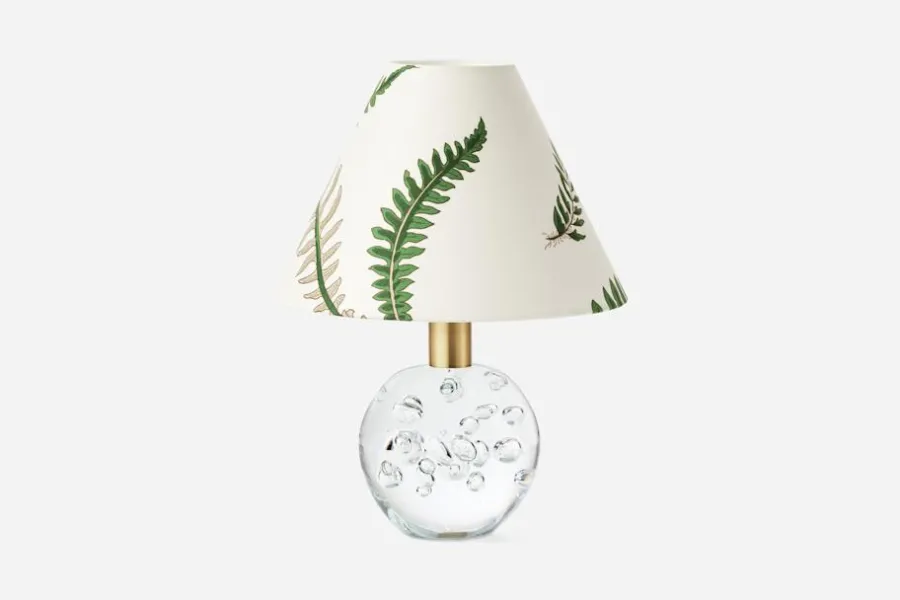 Denna lampskärm är tillverkad i bomullstextilen Stensöta. Svenskt Tenns grundare Estrid Ericson reste mycket till olika platser runt om i världen. Hon letade alltid efter vackra föremål och textilier att ta hem och sälja i butiken på Strandvägen. Textil Stensöta kommer från det engelska textilföretaget GP & J Baker, som i sin formgivning ofta hämtade inspiration från historiska mönstertraditioner. Estrid Ericson började köpa in textil från dem redan under 1930-talet. Det klassiska mönstret Stensöta är den enda textilen från GP & J Baker i Svenskt Tenns sortiment som inte är formgiven av William Turner. Motivet skapades istället av Joseph M Doran, som öppnade sin egen studio i Hounslow i början av 1900-talet. GP & J Baker samarbetade med honom från 1912 till 1936. Stensöta köptes in i januari 1935. Motivet är sprunget ur botaniska ritningar publicerade i Curtis Flora Londinensis mellan 1777 och 1798 (ett register över växter som växer inom en radie på tio mil från London).