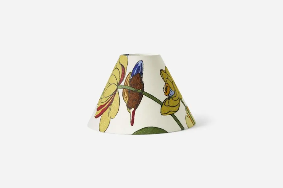 Josef Frank formgav en lampskärm till varje modell av sina lampor. Ursprungligen var de alla i vit textil, men Estrid Ericson lät senare sy upp dem med mönster av Josef Frank och andra formgivare. Denna lampskärm i linnekretong har mönstret Lotus.