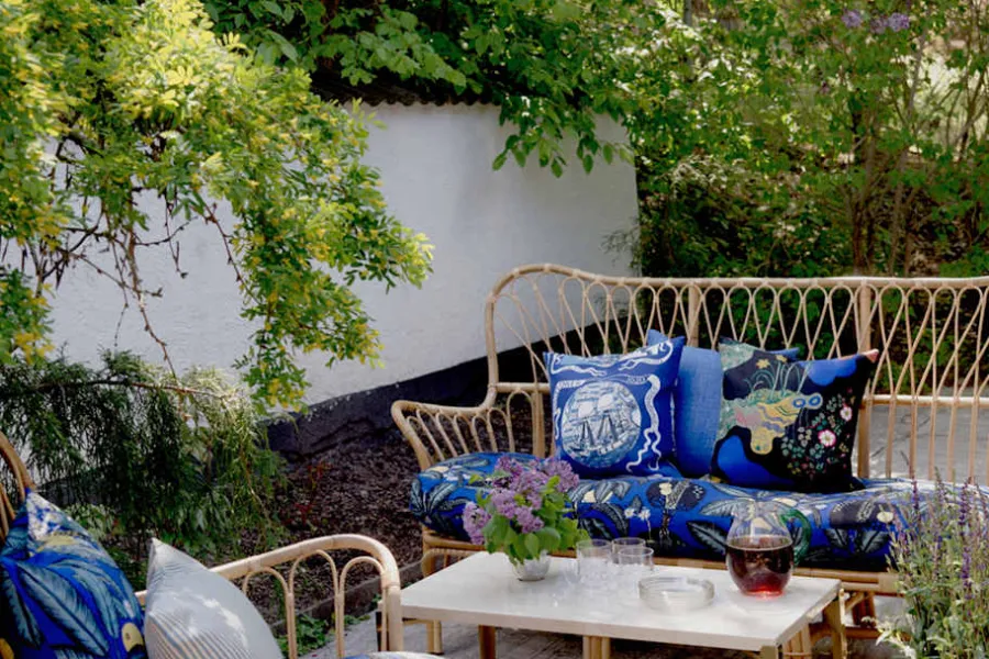 Elegant soffkudde i den randiga textilen Moire Stripe av Helene Blanche. Kudden har en klassisk elegans men samtidigt en modern känsla. Den unika sammansättningen av bomull och linne gör materialet lika vackert som hållbart.