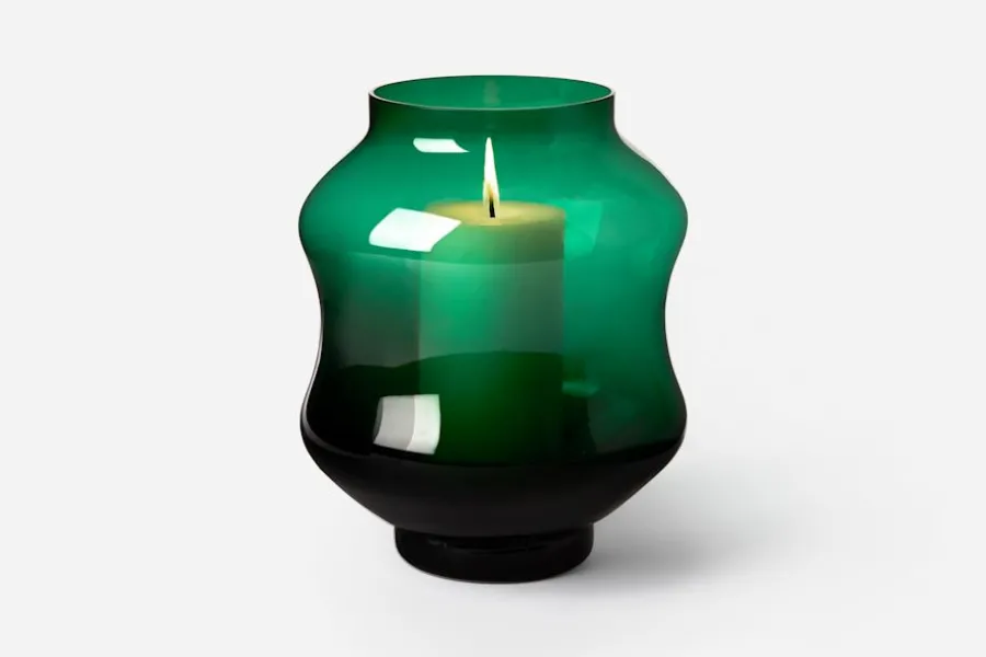 Formgivaren Johan Bjurmar inspirerades av minnen från havet när han skapade denna ljuslykta/vas för Svenskt Tenn. Sommarkvällar i Stockholms skärgård, hundratals papperslampor svävande över havet i Sydostasien och åren på västkusten då han badade i mareld var några av de tankar som vävdes samman i formen. Mareld tillverkas på Skrufs glasbruk i Småland och finns i fem olika färger: klarglas, grön, blå, tenngrå och bärnsten. Den kan användas både som ljuslykta och som dekorativ vas.
