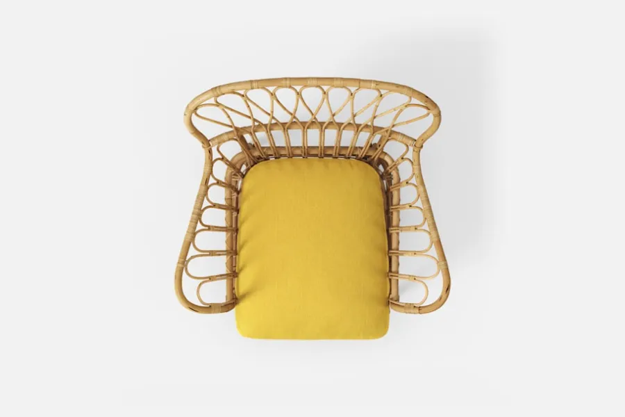 Dyna som passar till Fåtölj 311 klädd i textil Vägen ockra. Formgivaren Margit Thorén skapade möbeltyget Vägen tillsammans med Svenskt Tenns grundare Estrid Ericson 1949. Textilen får en vacker lyster av tre lintrådar i olika nyanser.
