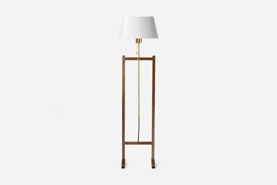 Golvlampan som kallas för ”Kryckan” formgavs 1952 av Josef Frank, som en utvecklad variant av en lampa som han formgivit redan på 1920-talet. Stativet i valnöt med mässingsdetaljer kan justeras efter behov.