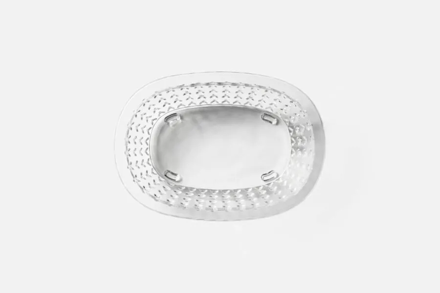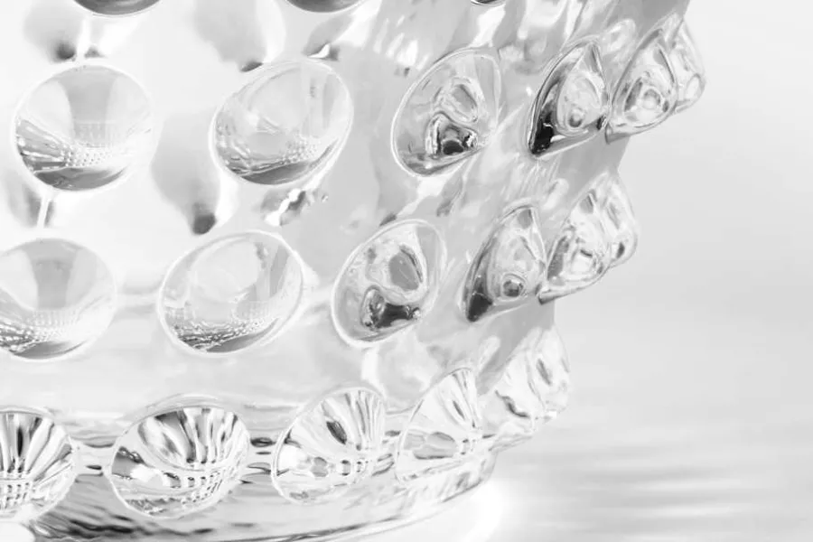 Jardinjären har en tunn skarv i glaset som uppkommer då den är pressad i en delbar gjutform. Den poleras i efterbearbetningen, men spår av den hantverksmässiga produktionen finns alltid kvar på slutprodukten.