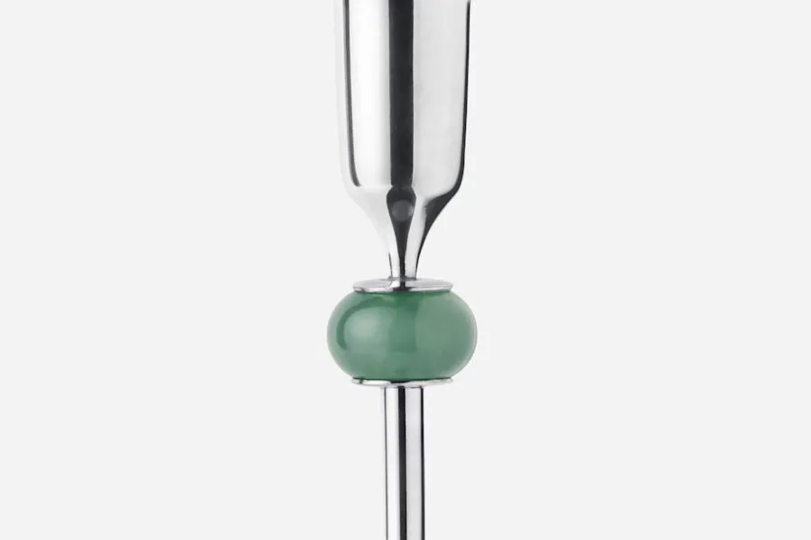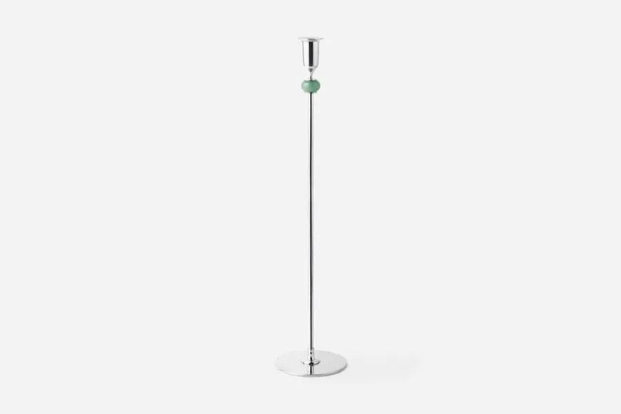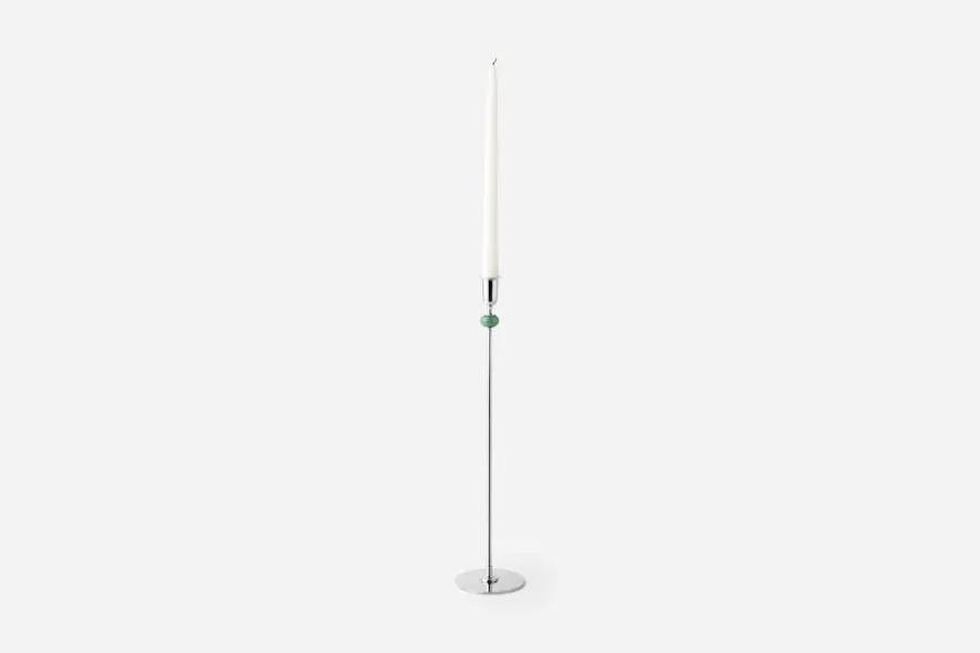 Denna ljusstake i tenn och sten grön aventurin är formgiven av Josef Frank år 1952. Levande ljus skulle stå i höga stakar då belysning underifrån ger ett ofördelaktigt utseende, uttryckte Estrid Ericson i en radiointervju. Hon rådde lyssnarna att duka med så höga ljus och så låga blommor, att man obehindrat kan se och tala med den som sitter på andra sidan bordet.