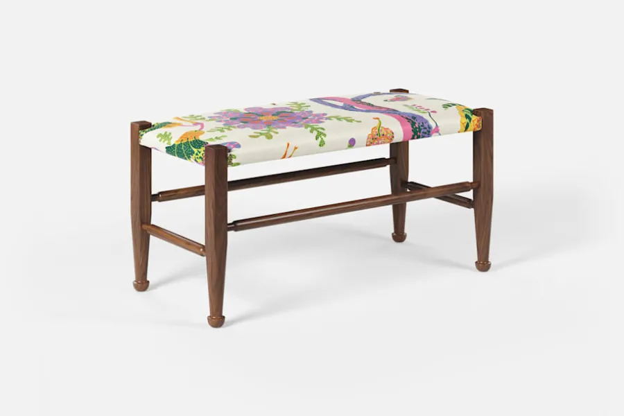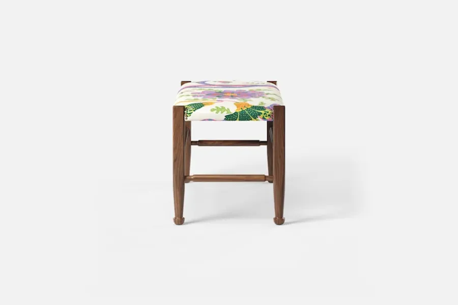Lätthet och elegans kännetecknar ofta Josef Franks möbelkonst. Så också denna pall, med synliga ben och de typiska tassfötterna, som formgavs i slutet av 1940-talet. Inspirationen hämtade Josef Frank från England och 1700-talets Queen Anne-stil.