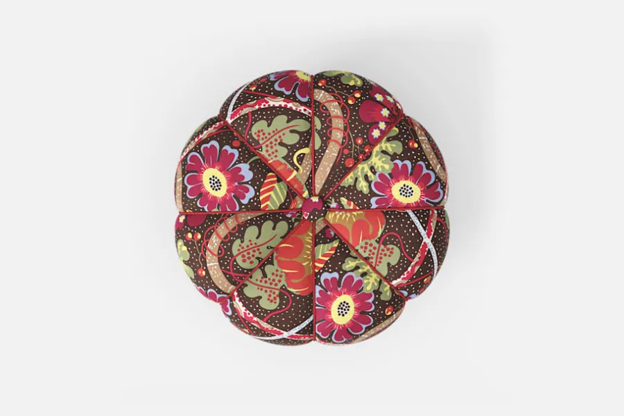 Den vackra, textilklädda pallen med mjuka, runda former ritades av Josef Frank för Svenskt Tenn cirka 1935. Pallen gjordes som en omarbetad variant av en möbel han skapade för sitt företag Haus und Garten i Wien, omkring 1929.