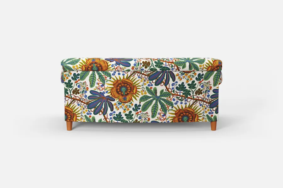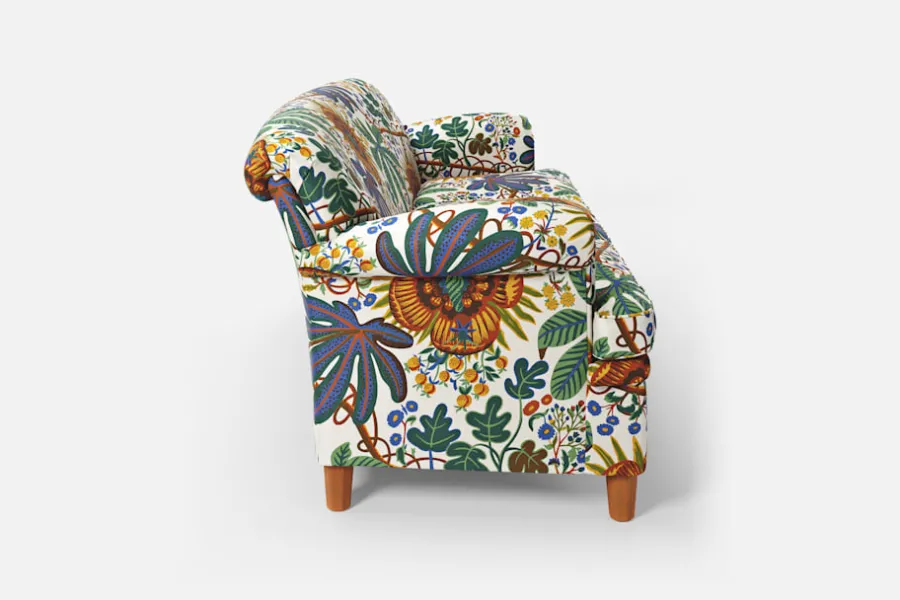 Denna lite mindre soffa är formgiven av Josef Frank i mitten av 1930-talet. Till skillnad från Josef Franks nättare skåp och stolar ger hans soffor uttryck för en bekväm tyngd och soliditet. Komforten skapas med en omsorgsfullt utförd stoppning och dubbla fjädersystem.