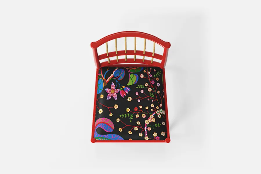 Josef Frank ansåg att en matsalsstol skall vara så lätt att den kan lyftas med ett finger och att användaren lätt bör kunna flytta stolen i rummet. Han formgav denna gracila stol år 1925 för sitt företag Haus und Garten i Wien. För att skapa spänning i formen valde Josef Frank ofta att blanda olika träslag och material, så även i denna klassiska stol.