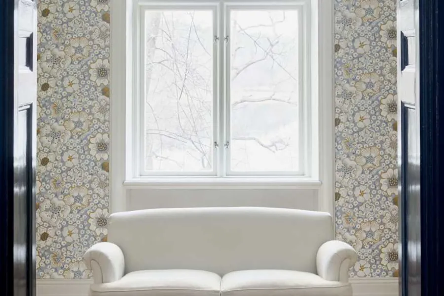 Vid eventuella fläckar på tapeten, rengör försiktigt med en lätt fuktad trasa.