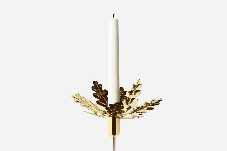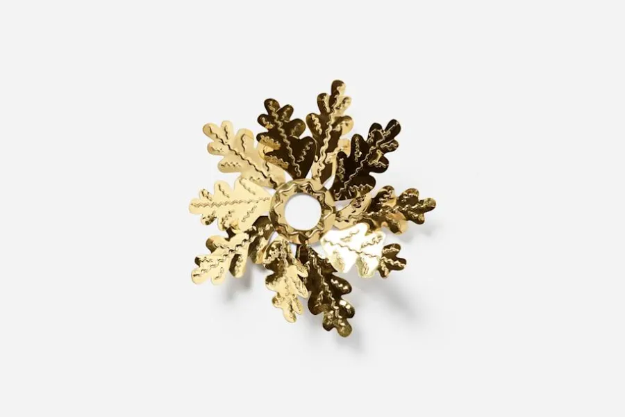 I formgivaren Maja Stens barndomshem fanns en pepparkakssamling med bland andra flera lövformar. Dessa användes flitigt då de hade en form som gjorde att man maximalt kunde utnyttja pepparkaksdegens yta. Det var pepparkakslöven som inspirerade henne till att skapa den vackra ljusmanschetten i mässing exklusivt för Svenskt Tenns julkollektion 2023.