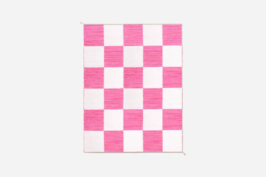 Svenskt Tenns dubbelvävda trasmatta ”Schackrutan” är formgiven av Margit Thorén under 1940-talet.