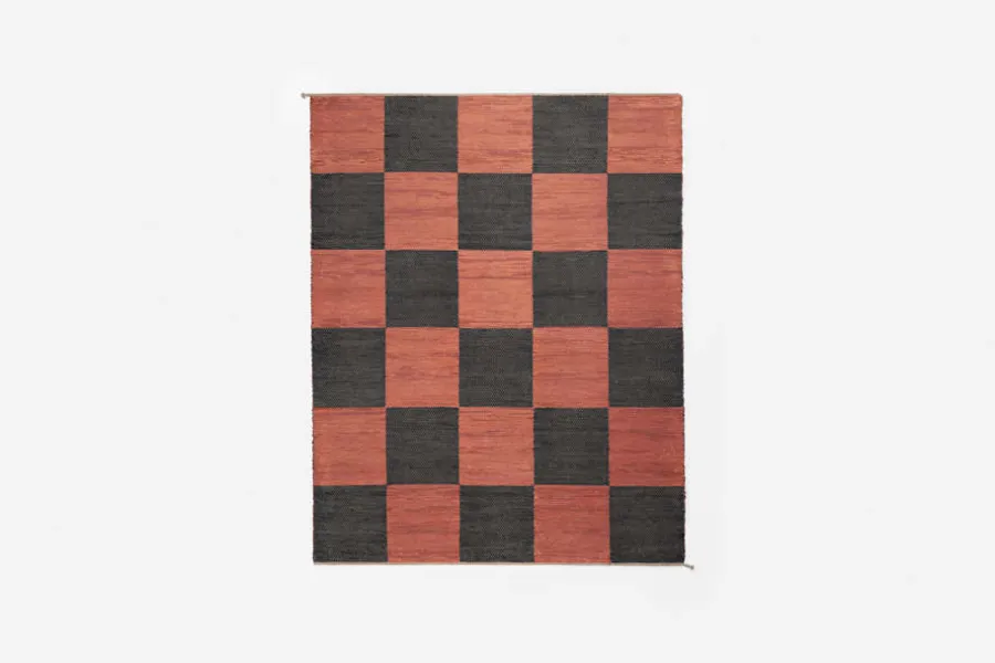 Svenskt Tenns dubbelvävda trasmatta ”Schackrutan” är formgiven av Margit Thorén under 1940-talet.