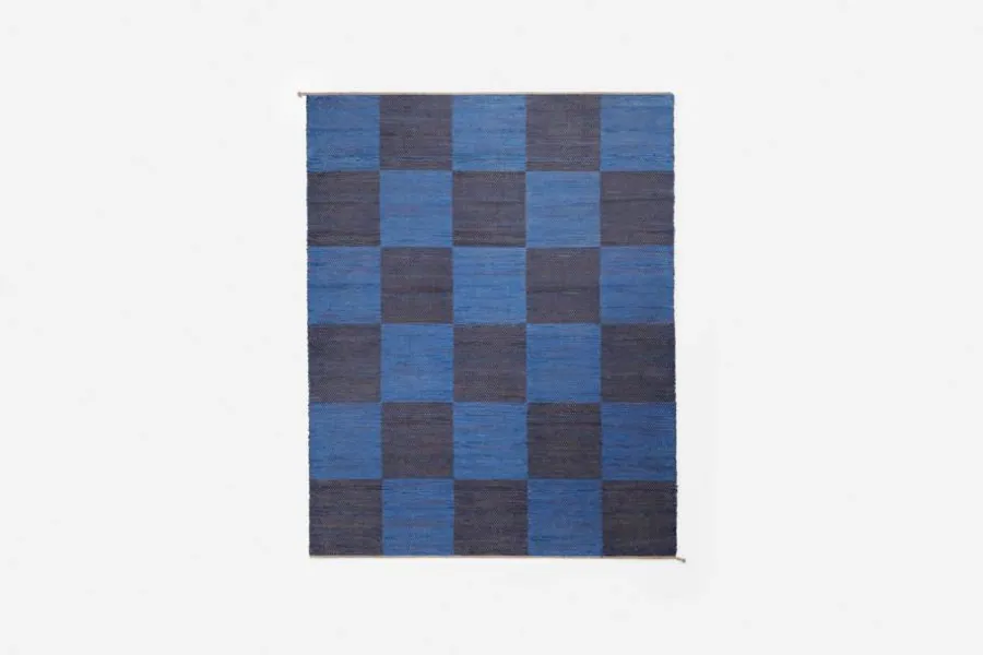 Svenskt Tenns dubbelvävda trasmatta ”Schackrutan” är formgiven av Margit Thorén under 1940-talet.