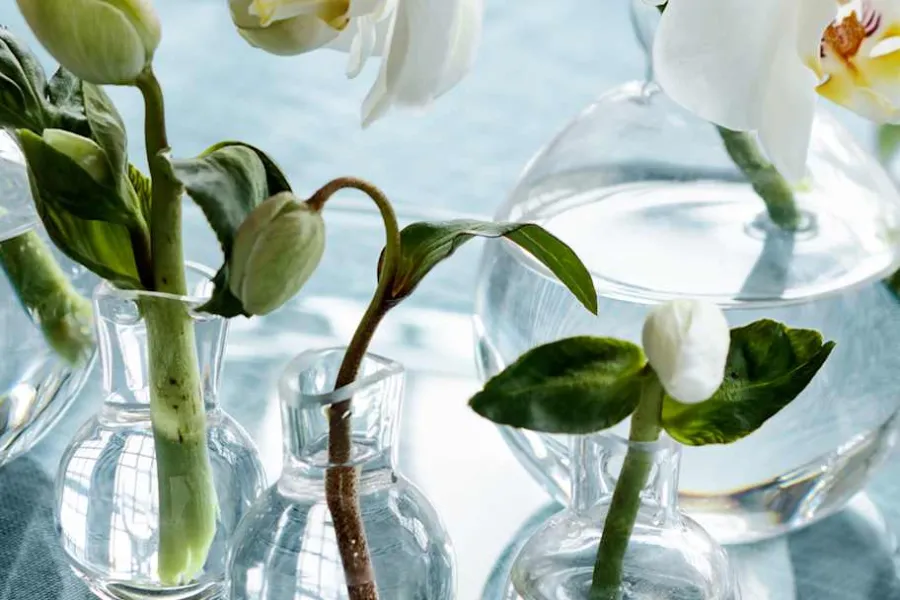 Tänk på att kondens och fukt kan skada känsliga bordsskivor och andra underlag. Torka därför av vasen direkt när du fyllt på med vatten. Håll alltid utsidan torr för att minska behovet av polering.