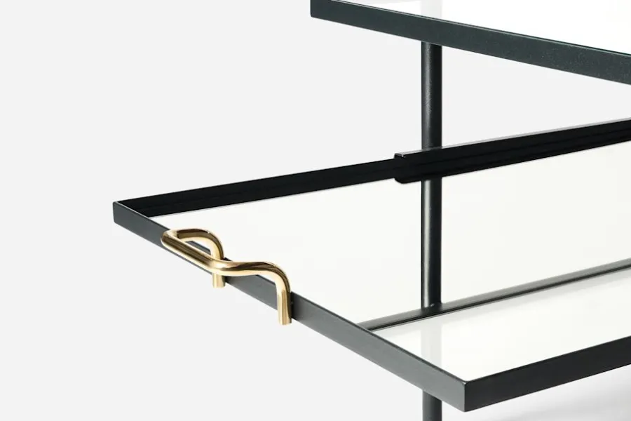 Ett elegant hyllinlägg i spegelglas, framtaget exklusivt till Per Öbergs soffbord Cap d Antibes. Finns även i svart och brunt skinn.