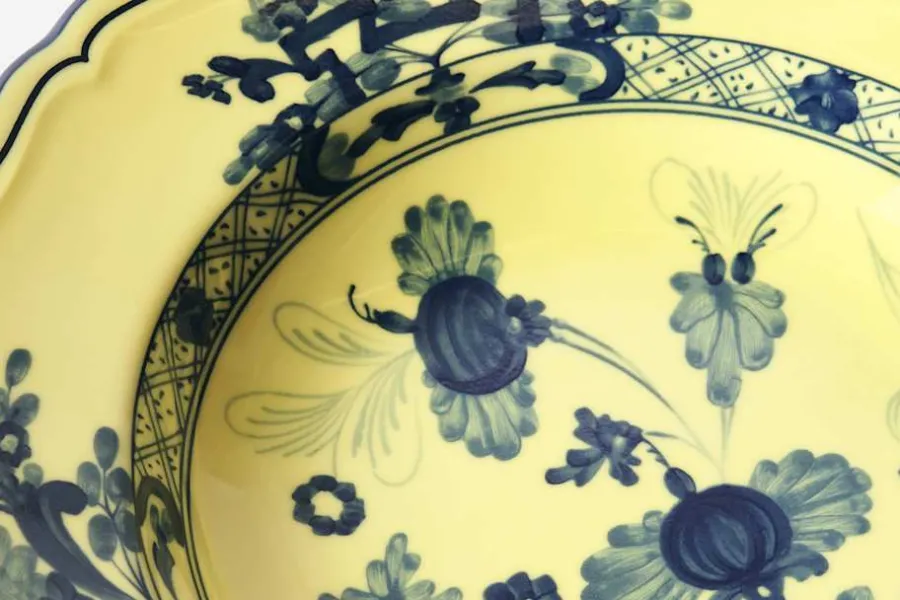 Duka ditt bord med sopptallrik Oriente Italiano och förvandla en enkel middag till en extraordinär upplevelse. Porslinsserien från anrika, italienska Ginori 1735 är tidlös och klassisk i sin design, med vackert motiv som för tankarna till en frodig trädgård.