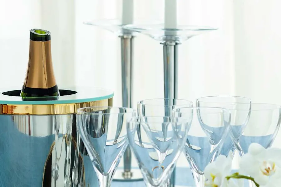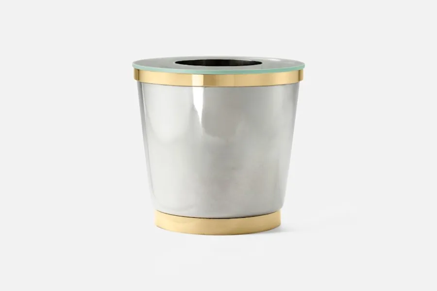 Sebastian Schildt har formgivit flera produkter för Svenskt Tenn i tenn och mässing. Vid förfrågan om att formge en vinkylare föll Schildts materialval självklart på detsamma. Material som tål att åldras och gör det vackert. Resultatet blev en elegant och funktionell kylare som håller drycken kall utan att flaskan blir blöt. Formgiven exklusivt för Svenskt Tenn 2014.