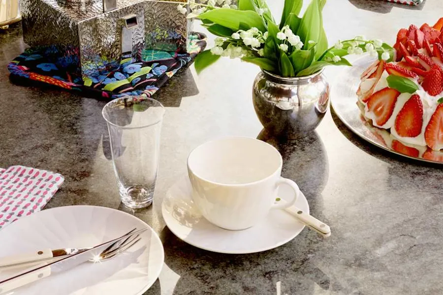 Inför Svenskt Tenns 80-års jubileum 2004 skapades kollektionen ”Nytt Svenskt Tenn” av tio kvinnliga svenska formgivare för att hedra Svenskt Tenns grundare Estrid Ericson. Keramiker Signe Persson-Melin skapade en servis med tekanna, gräddkanna och coaster i tenn och muggar i fint tunt benporslin. Det mjuka och präglade mönstret av myrten visar att hennes keramiska former var direkt överförbara till det följsamma tennet.