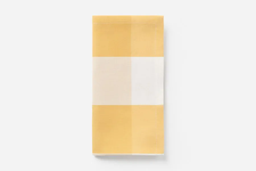 Svenskt Tenns Servett Ruta är en vacker, gul bomullsservett med klassiskt rutmönster som passar såväl till vardag som till fest.
