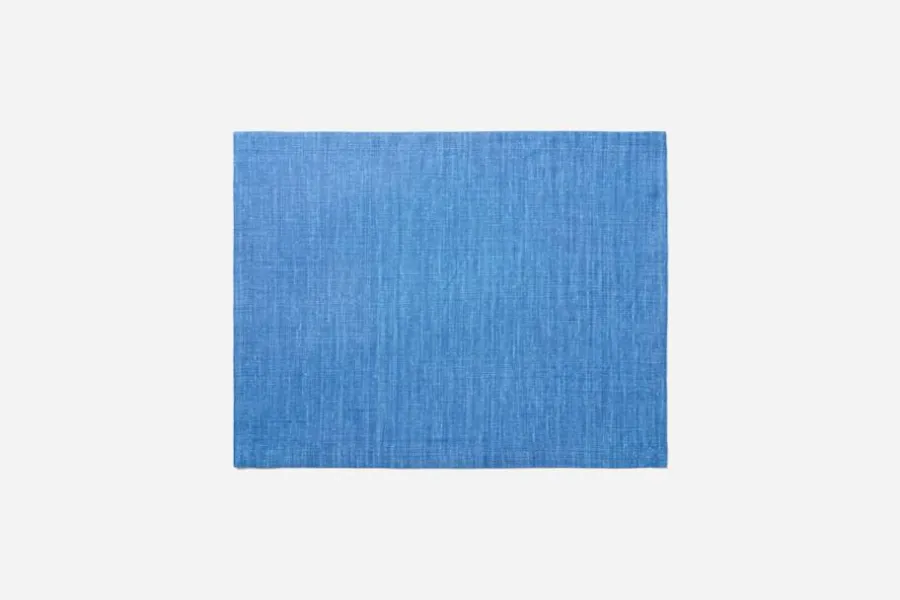 Svenskt Tenns bordstablett i påfågelblått linnetyg blir en vacker del av din dukning och passar såväl till vardag som till fest. Det klassiska linnetyget går väl ihop med både enfärgade tyger och mönstrade textilier.