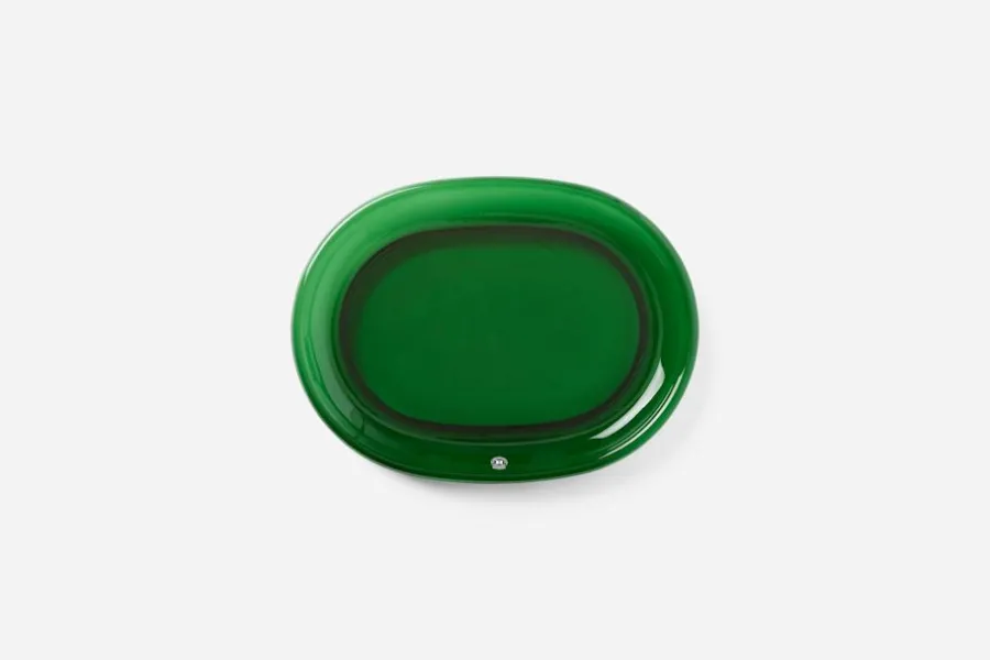 Svenskt Tenn började tillverka den ovala glastallriken på 1940-talet. Ursprungligen var den tänkt som skaldjurstallrik men kan med fördel även användas för frukt och kakor.