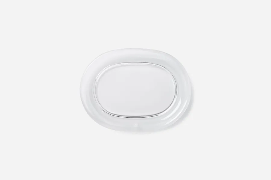 Svenskt Tenn började tillverka den ovala glastallriken på 1940-talet. Ursprungligen var den tänkt som skaldjurstallrik men kan med fördel även användas för frukt och kakor.